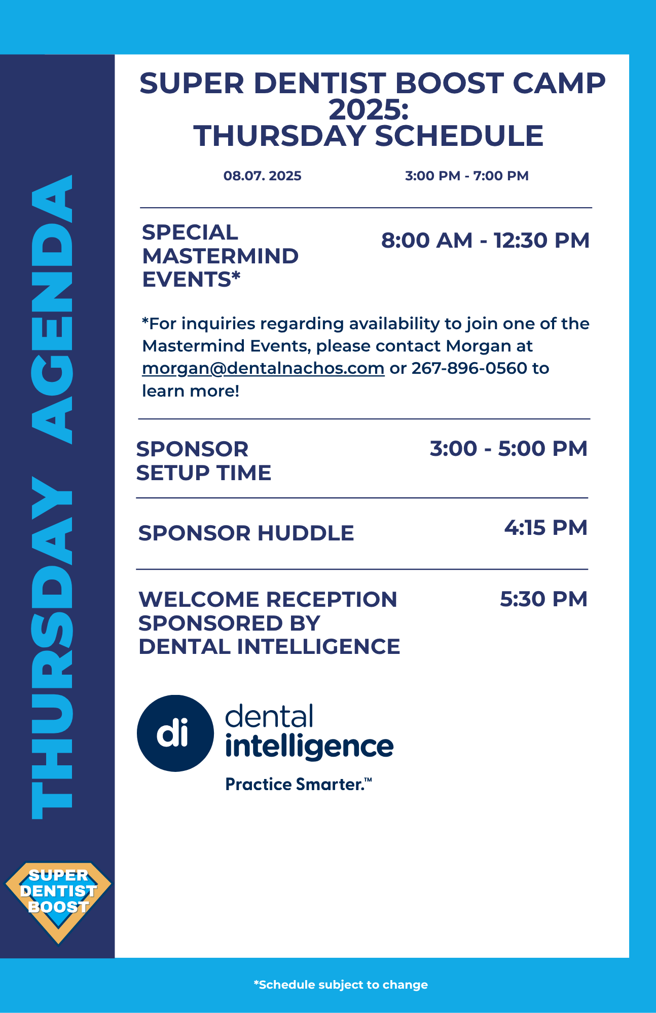 For reference, The Nacho Team will be wearing jeans, Dental Nachos shirts, blazers + comfortable shoes.