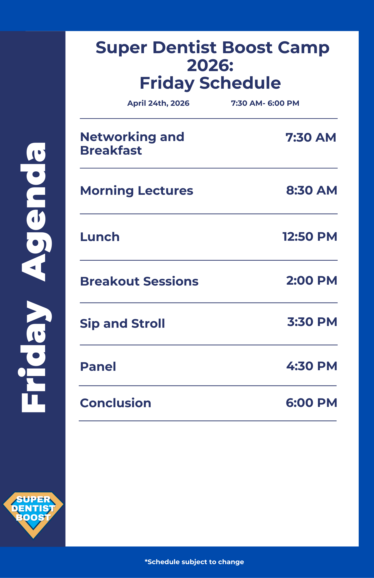 For reference, The Nacho Team will be wearing jeans, Dental Nachos shirts, blazers + comfortable shoes. Make sure to bring a sweatshirt or sweater because lectures rooms can get chilly!